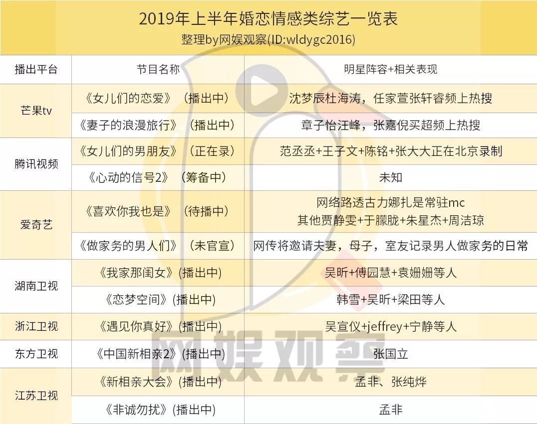 2019年是婚恋综艺的大年。