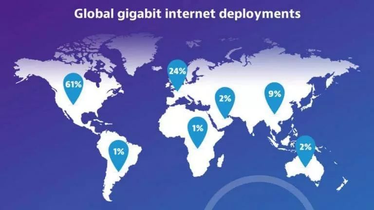 全球大部分地区仍然无法访问内陆的千兆互联网。