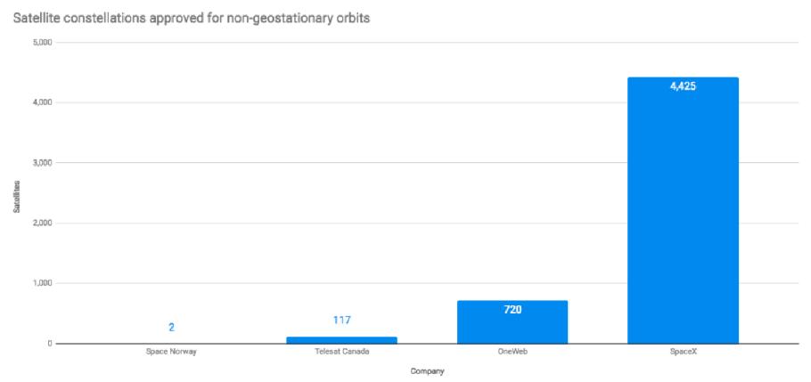 SpaceX于2018年3月获得FCC的批准,将发射4,425颗宽带卫星。
