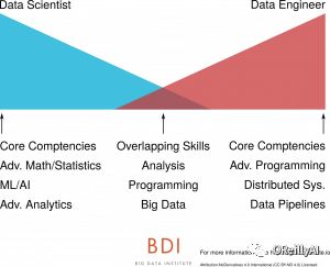 图2.显示数据科学家和数据工程师的核心能力及其重叠技能的图表。 Jesse Anderson和大数据研究所的插图