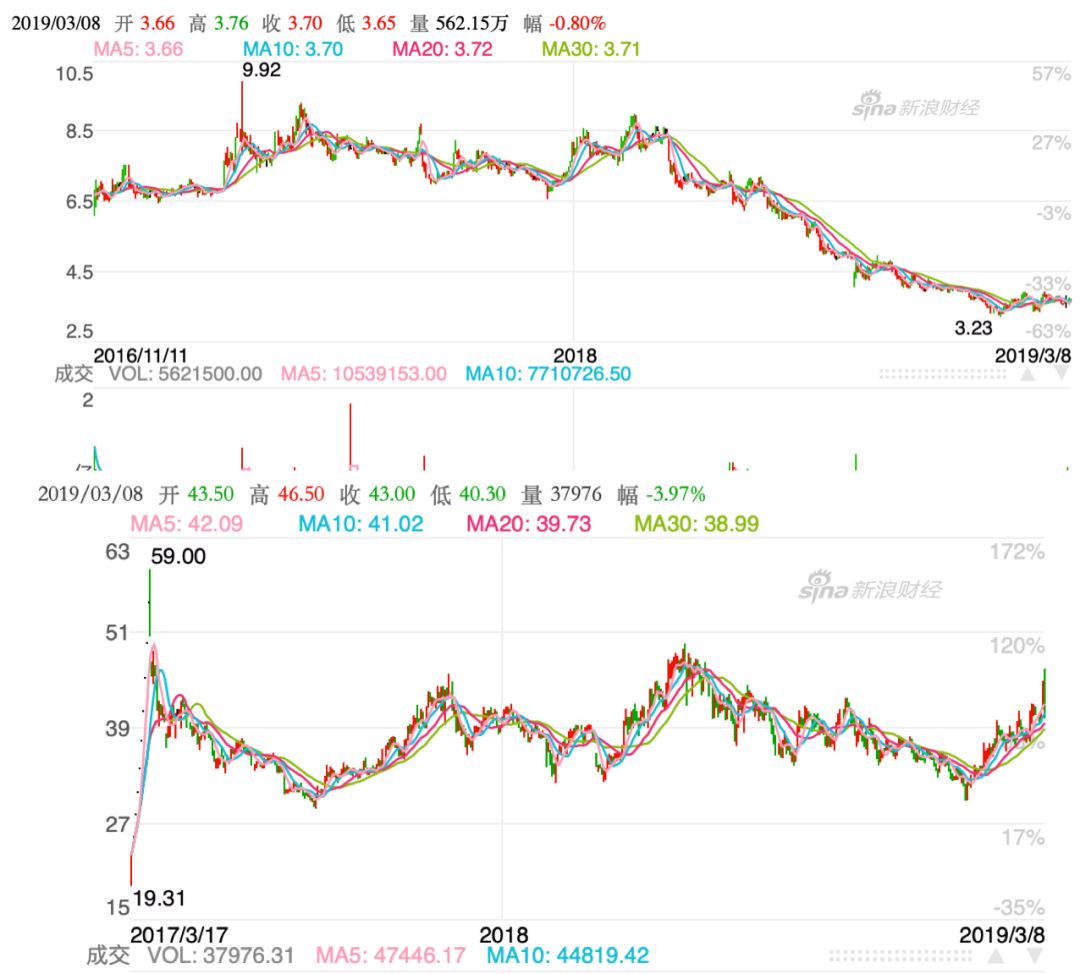 周黑鸭(上)与绝味(下)股价变化对比