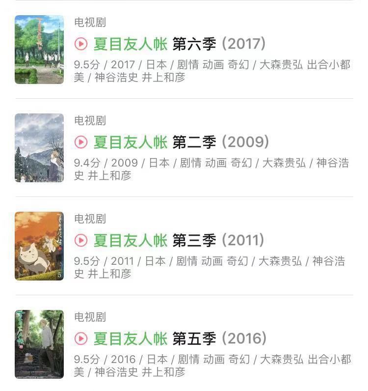 同时,《夏目友人帐》画风与设置上讨女性观众喜爱,在内容上也一直保持着高品质。目前《夏目友人帐》动画制作到第六季,豆瓣平均评分超过9.4分,如今剧场版上映评分也达到8.2分。