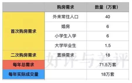 每年有71.5万套迫切的购房需求,但实际成交量只有18万套。