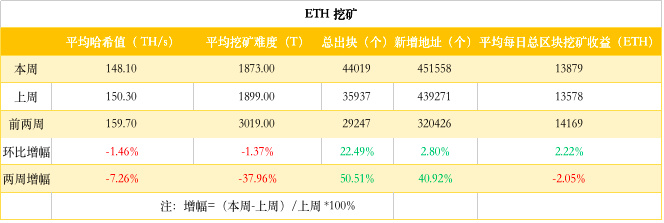 出块时间的缩短,带来出块数量的增加,本周总出块环比上涨 22.49 % ;不过,由于每个块的挖矿收益由 3 个降为 2 个,所以“平均每日总区块挖矿收益”并没有大的变化。