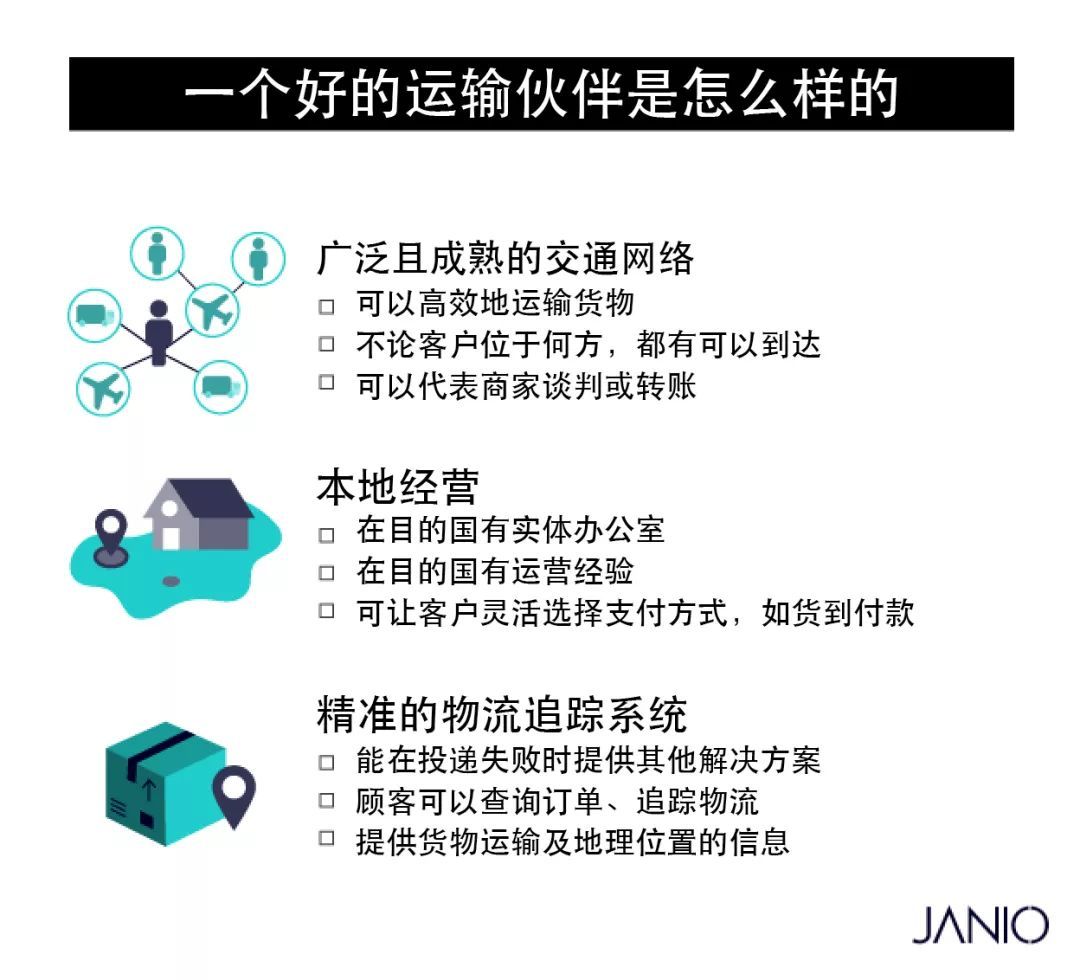 他们也应该能够提供当地的专业知识,例如针对本地人偏爱的付款方式开展对应的收款方法。例如,“货到付款”便与在线支付的系统不同,要求跨境物流公司具备专门的流程和条件。