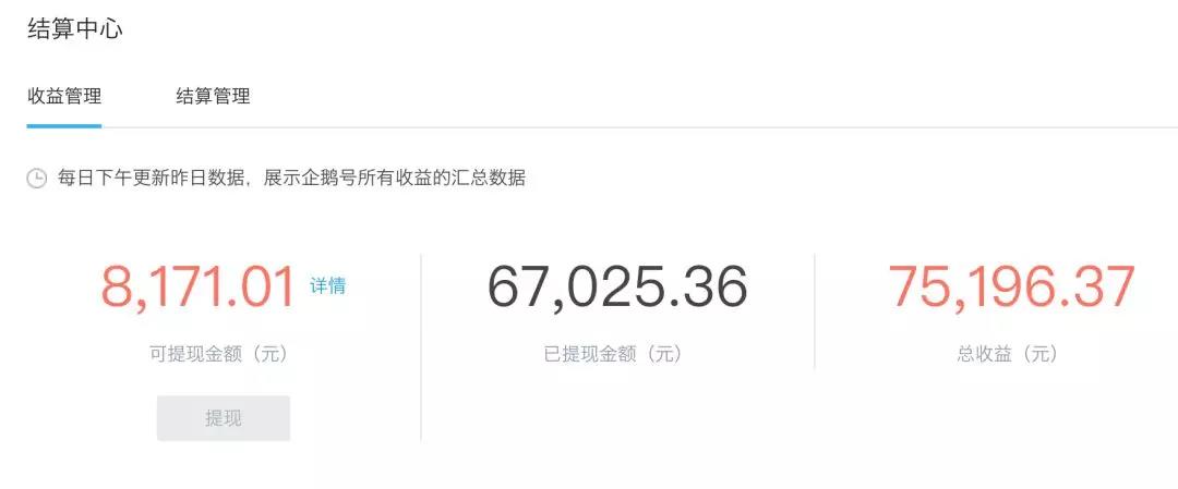 据三言财经了解,在腾讯企鹅号,某知名互联网大号的收益只有个位数,另一个商业类号30万的阅读收益才2块多。
