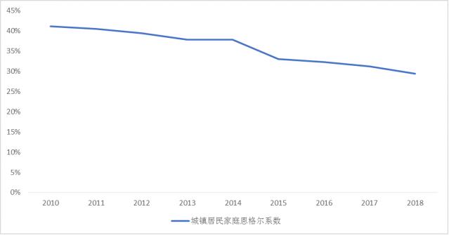 图7:2010-2018年城镇居民恩格尔系数变化情况