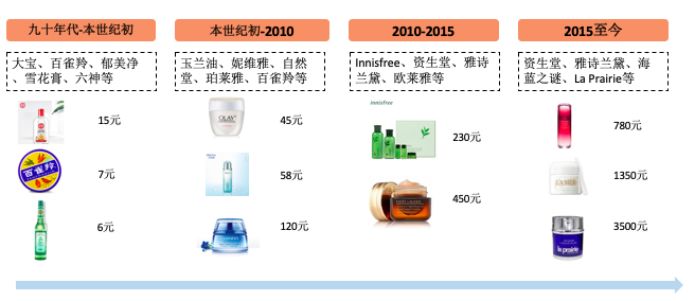 此外,从价格角度看,在消费升级背景下,高端化已经成为化妆品市场一大趋势。尤其是对于一些成熟品类(如基础护肤品)和品牌而言,市场渗透率难再提升,因而高端化妆品市场的发展将从价格层面为行业带来进一步增长机会。