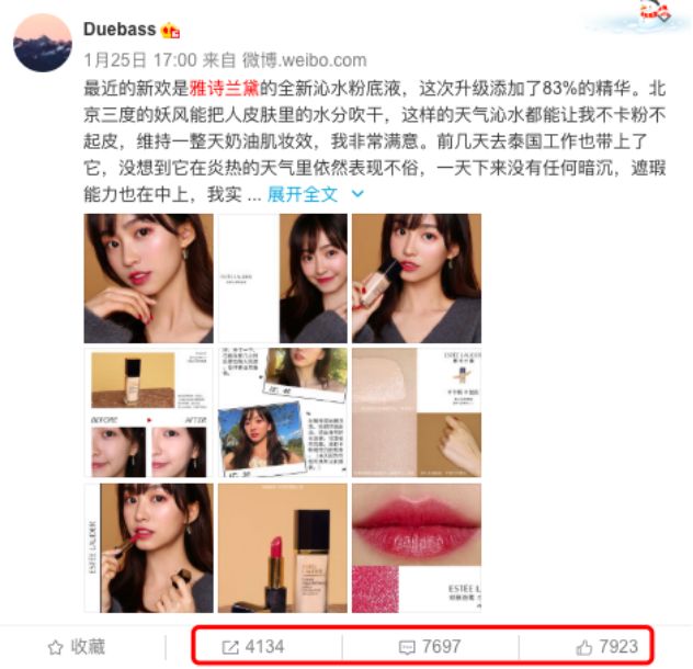 因而如今许多品牌都利用社交平台的专业KOL(Key Opinion Leader,关键意见领袖,指拥有更多、更准确的产品信息,且为相关群体所接受或信任,并对该群体的购买行为有较大影响力的人),优势来进行新品宣传,不仅降低了成本,而且效果很好。