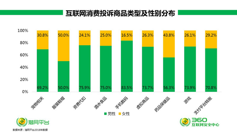 360发布315互联网消费投诉报告:2018年网络消费投诉中,男性用户占7成
