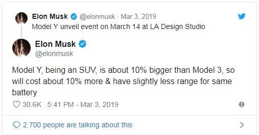 目前相对最官方的信息来自马斯克的推特,车型比Model 3要大约10%。里程方面,Model 3最先的高续航版本达310英里,若采用相似电池包,则Model Y里程可能在290至295英里的范围,具体参数待正式发布会公布。