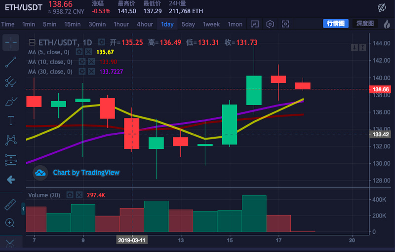 火币pro数据显示,本周,ETH 价格震荡上涨,周内收于 139.41 USDT,周内微涨3 %,成功站上 5 日均线(136.15 )以及10 日均线( 135.55)。