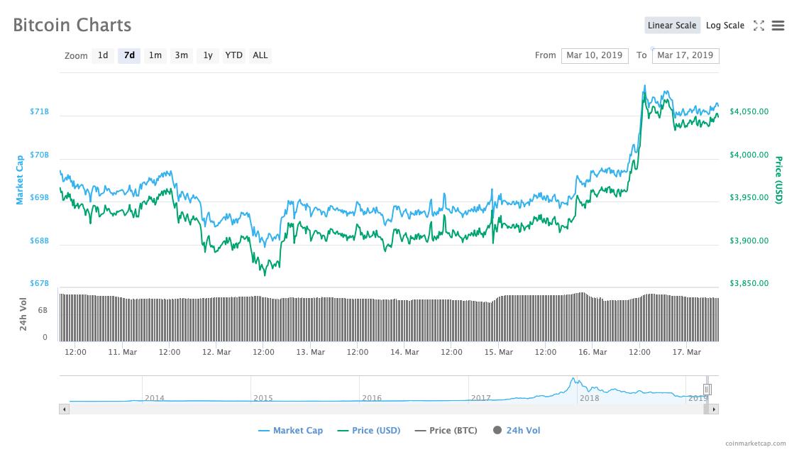 BTC周报 | 比特币交易量5月内增长150%;BTC突破4000美元(3.11-3.17)