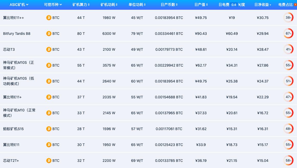 矿机方面,当前日净收益排比前三名是翼比特 E11++、Bitfury Tardis B8 和芯动 T3,日净收益较上周 +1 元。