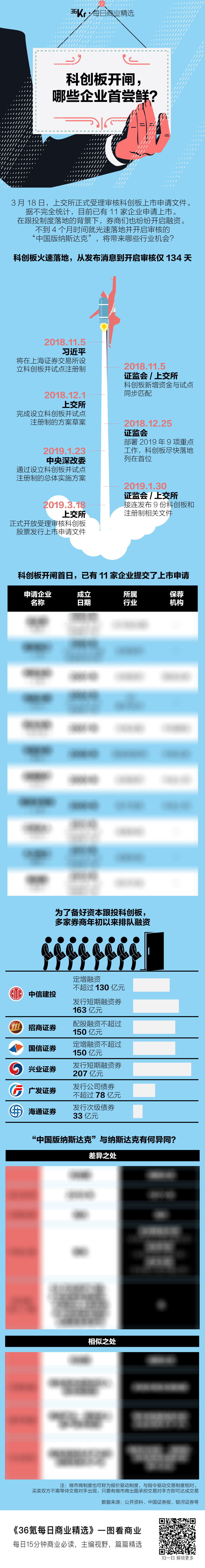 今天是科创板企业材料申报的首日。知情人士称,首批科创板上市企业名单不会在18日当天公布,或有望在22日即本周五对外集中发布。上周六在上交所举行的百家券商座谈会,邀请的都是董事长或总经理级别人员。而随后开始召集了保荐代表人进行对科创板规则、指引的具体业务培训,3月18日当天还在陆续进行。(证券时报)