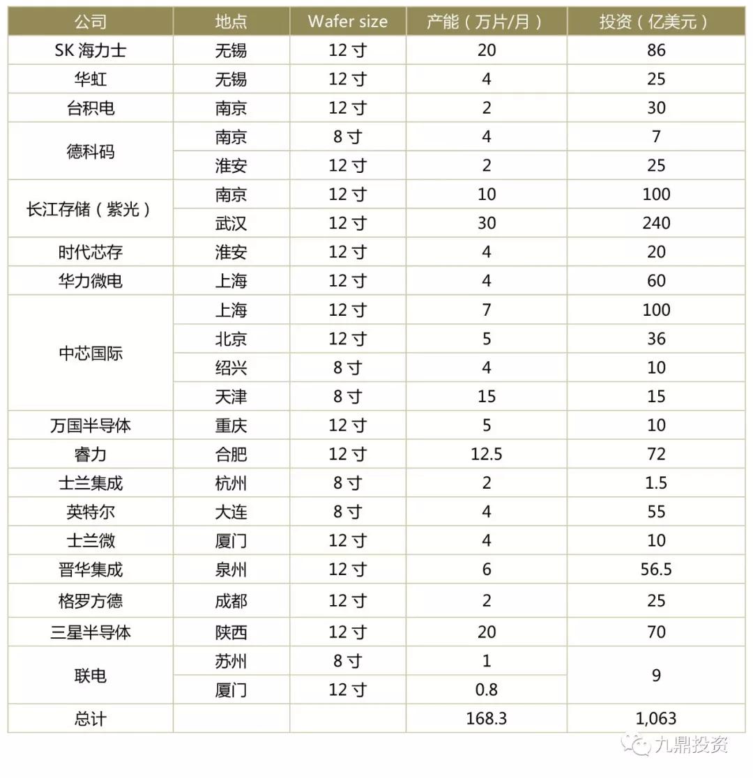 表1:大陆正在建设中或规划中的晶圆厂(8寸、12寸)