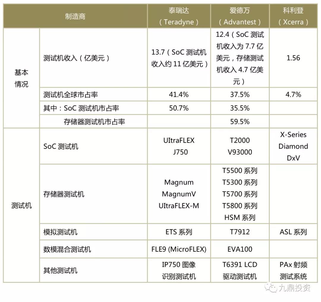 表6:全球主要测试机企业概况