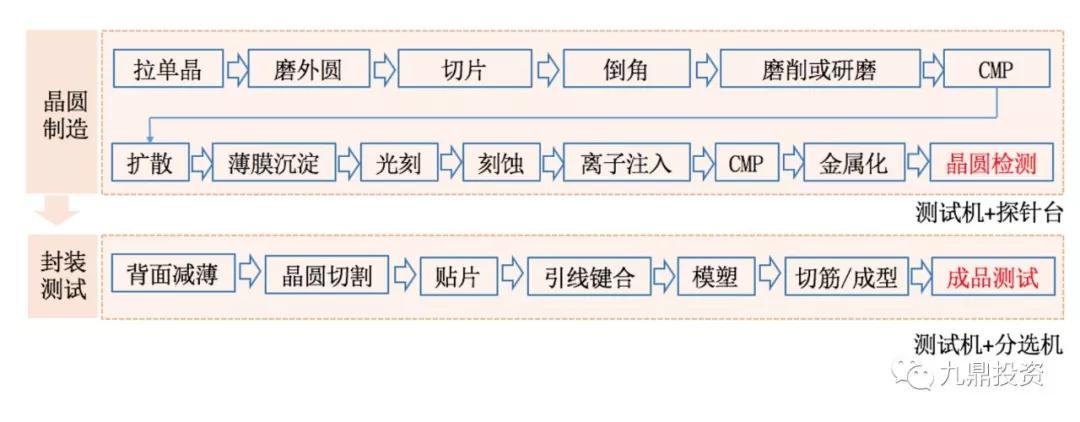 半导体测试是半导体生产过程中的重要环节,其核心测试设备包括测试机、分选机、探针台。