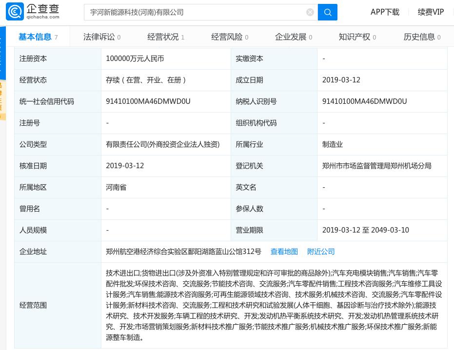 3月12日,恒大国能新成立一家全资子公司宇河新能源科技(河南)有限公司,恒大国能100%控股,经营范围包括技术进出口、可再生能源领域技术咨询、汽车充电模块销售等业务。