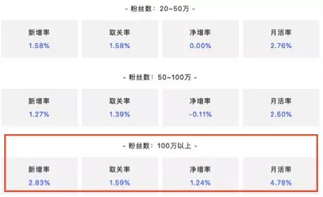 不过100万以上的号,打开率可能相对会越低,但因为人越多“池子”越大,新增率和净增率是正向的,所以说大号会强者恒强。