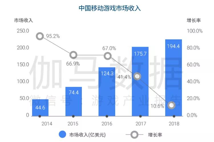 虽然中国移动游戏市场的规模还在逐步扩大,但增长率持续降低。同时,中国内地以外的移动游戏市场规模一直是中国移动游戏市场的两倍以上。