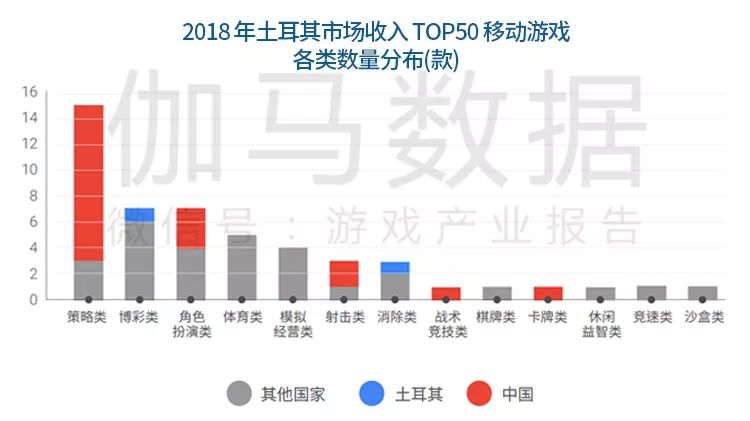 在土耳其市场收入TOP50的移动游戏中,外来产品占据主要地位。其中,中国移动游戏在策略类产品中已经占据了明显的优势。未来,中国移动游戏需持续保持策略类的优势,凭借在策略类积累的经验提高其他类型的中国移动游戏产品占有率。