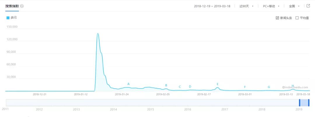 多闪的百度指数趋势,自发布后的高峰已趋于平缓