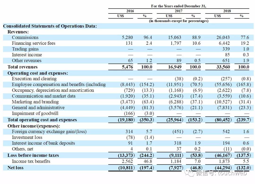 招股书显示,老虎证券2018年总收入为3356万美元,同比增长98%。2016-2017年收入分别为547.6万美元、1694.9万美元。
