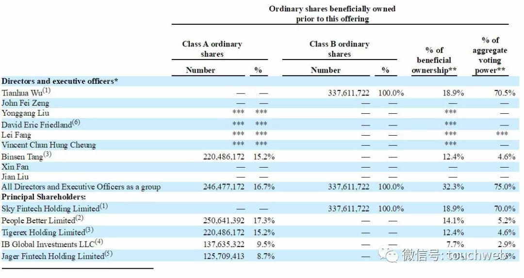 IPO前,巫天华通过sky fintech holdinglimited持股为18.9%,拥有70%的投票权;