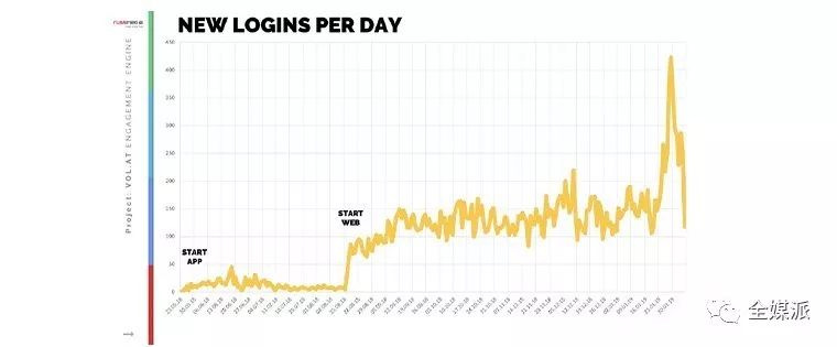 在该奖励系统推出后的第一天,团队就发现它对登录次数产生了影响。从以前的每天一到两次新用户登录,上升到450次。