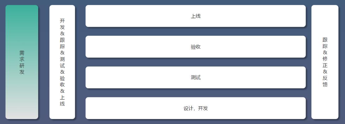 需求研发阶段主要阶段有:1.设计&开发;2. 测试 ;3.验收;4.发布上线。这个过程中产品经理主要跟进需求的研发进度,以及保证整个过程中的信息对称,以及对一些突发的需求修改给出可行性方案。