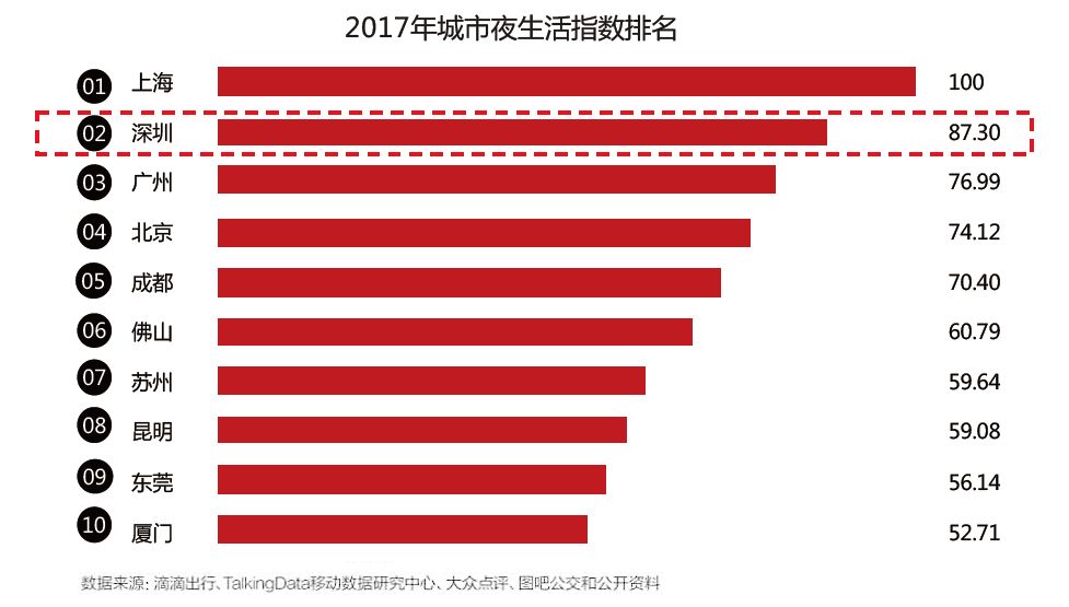 2018年,深圳GDP首次超越香港,成为粤港澳大湾区经济第一城。深圳的城市角色从试验到领衔,我们看到未来更广阔的发展前景以及更多元化可能的城市潜力。在由滴滴出行、大众点评等网站综合评分得出的城市夜生活指数排名中,深圳城市夜生活指数仅次于上海,排名第二,“夜经济”已经成为深圳一个亮眼的城市标签。