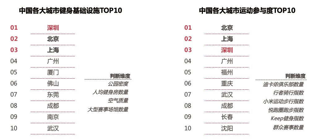 活力之城:综观城市运动环境、运动人群活跃度、健身场所良性运营度三个维度,深圳的城市运动氛围在全国名列前茅。