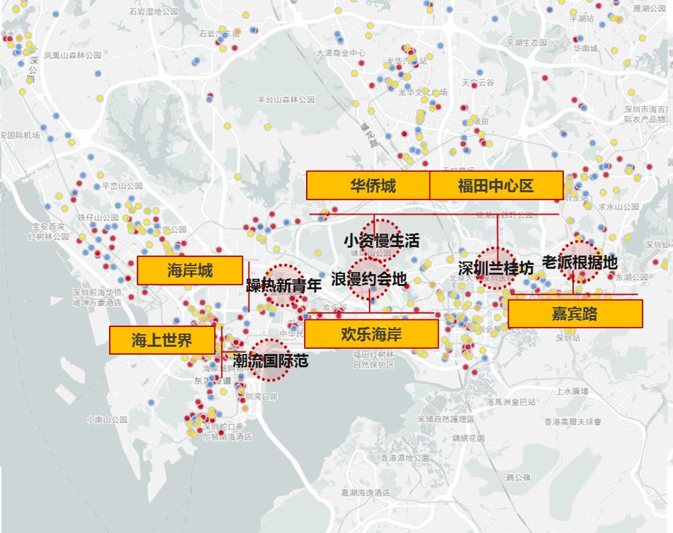 随着中高端居住人口的外溢,关外区域开始呈现高消费娱乐的发展潜力,其中临近核心区的民治、布吉消费水平较为突出。