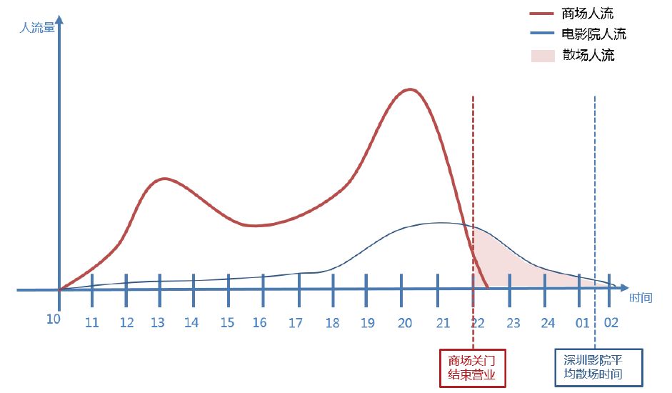 商场每日结束营业时段一般为22:00,而深圳影院平均散场时间为凌晨1点以后。