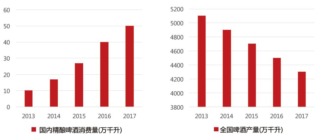 国内啤酒长期缺乏变化和创新,工业啤酒单一的口感已无法满足消费者的需求,产量已呈多年下降趋势。