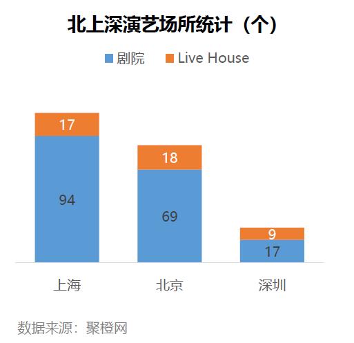 深圳无论是场馆数量和场次排期都与北京和上海有较大的差距,市场规模较小,演艺氛围相对较弱。