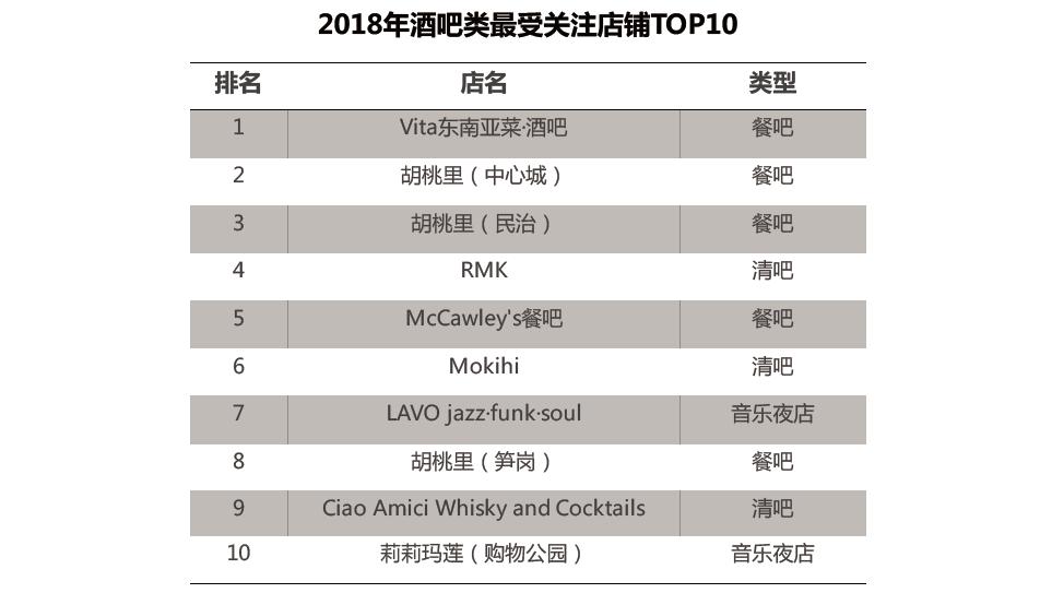 餐吧是“餐饮+酒吧”的跨界产物,当前餐吧已成为酒吧类业态最受关注的业态,2018年大众点评上深圳酒吧类业态最受关注TOP10中有5家是餐吧。