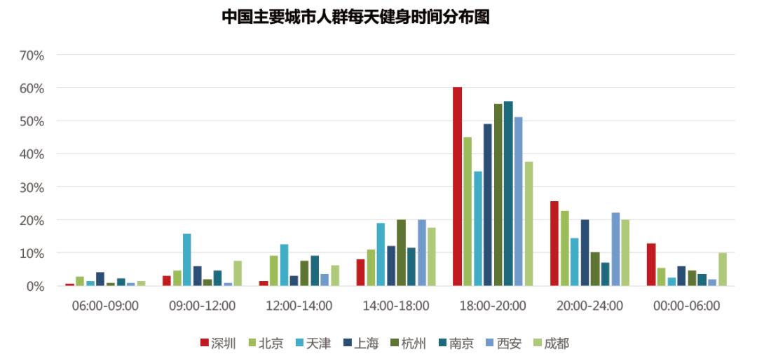 活力之城:深圳是中国夜晚健身人数比例最高的城市,晚上6点之后健身人数占全天运动人数的70%以上,健身已经成为深圳夜经济的重要组成部分。