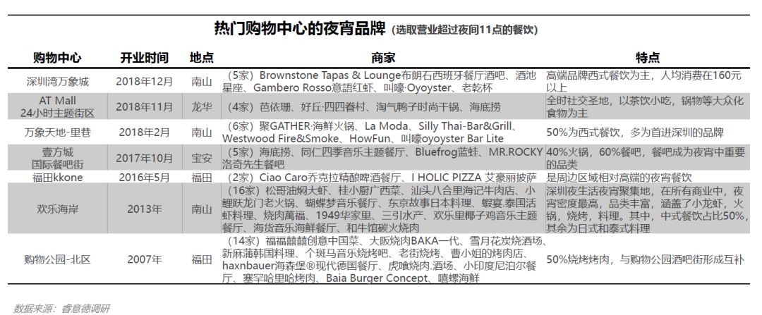 众多品牌餐饮,为迎合消费者生活方式的转变,转向关注宵夜时段,延长营业时间,以及开拓新的复合型餐饮进行竞争。商业出现全时段主题购物街区,今年出现的商业纷纷布局宵夜市场,未来宵夜品牌将是购物中心重点招商的选择。