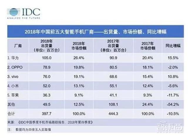 先看手机行业,根据IDC最新发布的2018年中国智能手机市场最新报告来看,华为第一,OV紧随其后拿下二三名,小米获得国内行业老四。