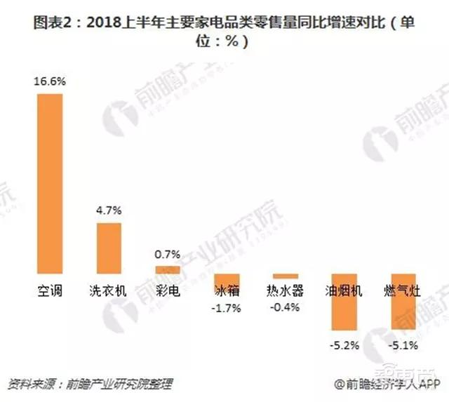 此外,根据中怡康数据,2018年上半年,空调是主要家电品类中唯一取得两位数的增长品类,位居各家电品类增长率之首。