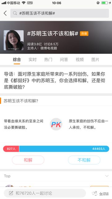 女主角们跌落人间烟火苦苦挣扎,观众们的反应也总是出奇一致:不理睬不原谅,远离极品家庭,女主独自美丽。在微博上,#苏明玉该不该和解的话题阅读量高达3.8亿,98%的观众选择“不和解”。