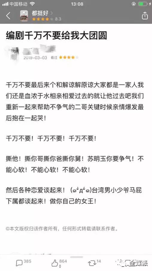 网友们一边为坚毅独立的明玉打call,一边火力全开地炮轰苏家的男人们,万人血书求“不团圆不原谅独自美丽”。可惜,“都挺好”的剧名似乎已经暗示网友们并不能如愿。
