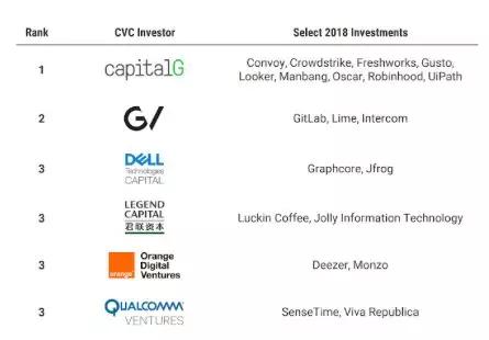 CB Insights 统计,CapitalG(谷歌资本,偏中后期)是最活跃的独角兽(十年以下,市值超过10亿美金)投资者,在2018年投资了9家独角兽公司。