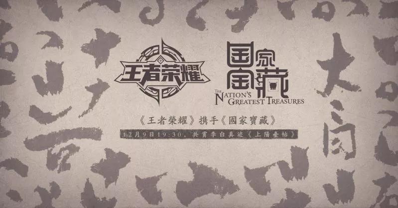 2018年12月9日,当期的《国家宝藏》开播,出现了李白的名作《上阳台帖》,谪仙李白的千古风流,中国文化的源远流长,在这幅仅仅25字的字帖中得到了最好的体现。《王者荣耀》也在同期上线了上阳台贴内容,和《国家宝藏》一起将李白的故事传递给更多人。