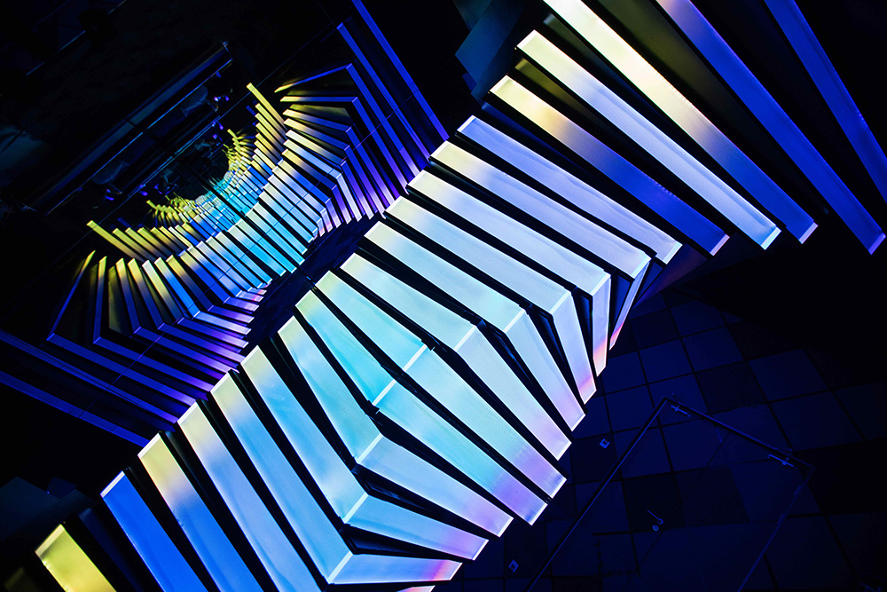 今年1月,vivo通过自己的官方微博发布了“vivo全球升级品牌形象”的消息。在此次品牌焕新中,全新的logo变得更加轻盈和简洁,主色调采用的蓝色也变得更具视觉冲击力。这一色彩的变动也为vivo Lab概念店的设计带来了更多灵感——在全新设计的概念店中,一层展示vivo价值观的区域甚至被赋予了“blue core”这一专门的名字,设计师们显然希望通过明确的色彩展现来强化品牌在消费者心目中的形象。