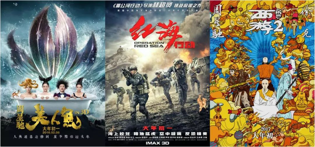 实际上,在整个表格中的50部影片中就有16部影片都出自春节档,其中,TOP20中就占据了14部。比如,《红海行动》《唐人街探案2》是2018年春节档影片,《西游伏妖篇》《乘风破浪》是2017春节档,《美人鱼》《澳门风云3》是2016年春节档......