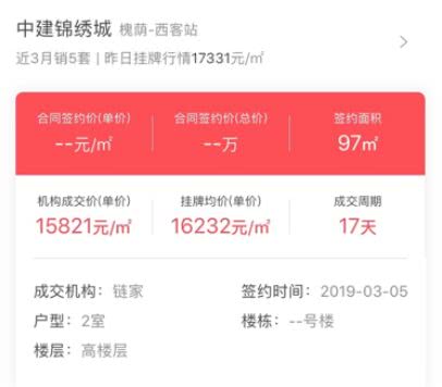 在兔博士查到的今年三月份成交的一套90平米两居室来看,均价为15821元/平方米,而去年这个时候,相同户型的一套房子的成交均价为18222元/平方米。