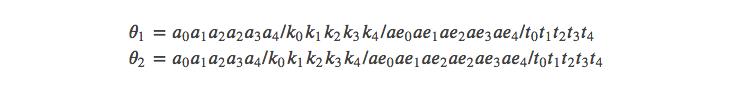 𝜃1θ1中音素a的中间状态(𝑎2a2)持续了两个时刻,而ae的中间状态𝑎𝑒2ae2只持续了一个时刻;而𝜃2θ2正好相反。当然上面我们只列举了两条路径,实际的计算过程中,我们需要变量所有可能的𝜃θ,而任意一个状态序列(路径)𝜃0,𝜃1,…,𝜃𝑇+1θ0,θ1,…,θT+1(0时刻和T+1时刻是我们增加的进入和退出状态,𝜃0θ0跳到𝜃1θ1是没有输出的)的概率计算如下: